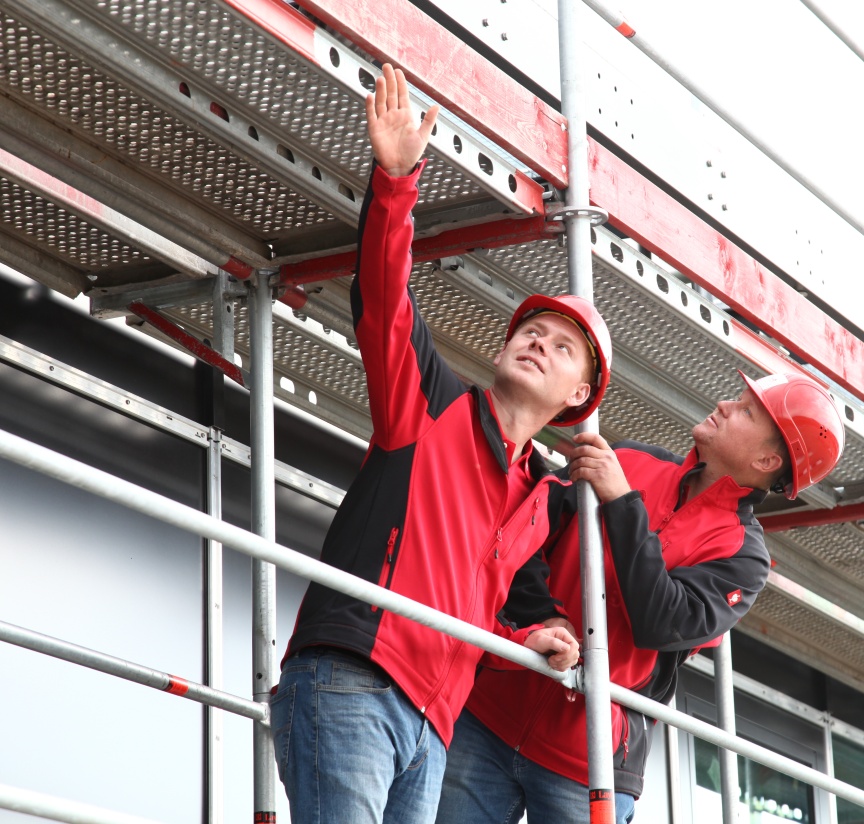 Das Unternehmen war eines der ersten, das die Allround STAR Rahmen, das Allround Traggerüst TG 60, den Allround Brückenträger und das innovative modulare Fassadengerüstsystem AGS mit systemintegriertem voreilenden Seitenschutz in der Praxis eingesetzt hat. „Wir sind getrieben von dem Anspruch, uns immer weiter zu verbessern, um nachhaltig erfolgreich zu sein. Die innovativen Lösungen und Ausbauteile von Layher helfen uns dabei. Daher sind wir immer an den Neuheiten interessiert und testen alle Ideen aus Eibensbach auf unseren Baustellen. Und ich muss sagen, wir sind jedes Mal überrascht, wie man sogar die bestehenden Produkte immer noch ein bisschen besser machen kann“, führt Kevin Fleischmann, Gerüstbaumeister und Bauleiter des Unternehmens aus.