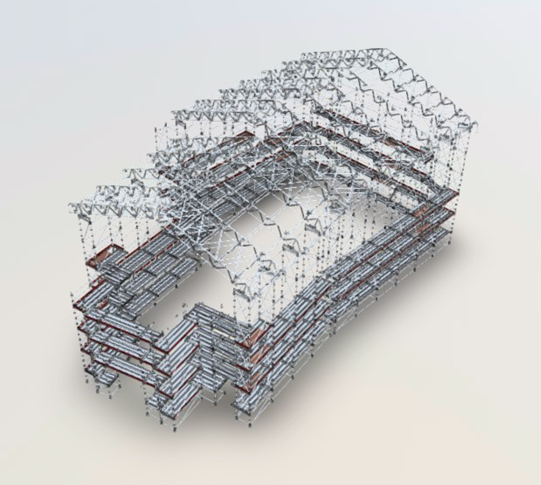 The scaffolding structure was planned in advance in 3D. That allowed close consultation about the structure between the construction company Meyer, the engineering company Schumacher and the Layher applications engineers using the digital scaffolding twin.